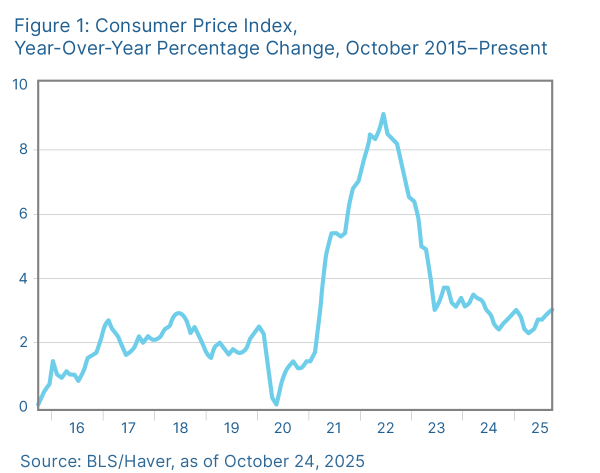 The September Consumer Price Index report was initially delayed but was released later in the month. On a year-over-year basis, consumer inflation rose to 3 percent in September. As seen in Figure 1, inflation has remained above the Fed’s 2 percent target throughout the year and has been steadily trending up over recent months. While the continued rise in inflation was not enough to keep the Fed from cutting interest rates at its October meeting, this will be a key area to monitor ahead given the Fed’s dual mandate to maintain stable prices and maximize employment.